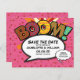 Personnalisez avec vos noms et détails pour annoncer la date de votre événement spécial sur ce budget cool moderne enregistrer la date annonce. Dessin humoristique moderne, design rétro amusant. Conçu par Thisisnotme©