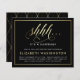 Budget Gold & Black Surprise Anniversaire Invitation de Eugene Designs. Envoyez ces invitations minimalistes en noir et or et commencez votre fête surprise dans le style! Sur le devant, dans un script stylisé à la main est le texte "shhh..." en fausse feuille d'or. Au contraire, il y a un motif de feuille d'or faux sur arrière - plan noir.