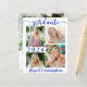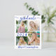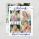 Un faire-part de graduation moderne et abordable, bleu et blanc royal imprimé sur un papier léger de 4,5 x 5,6 pouces au lieu de cartable avec typographie de script de calligraphie et un capuchon de graduation en argent faux métallique et personnalisé avec 5 photos (un collage photo de quatre images sur le devant et une sur le dos). L'année de classe est modifiable pour les autres années. Le verso comprend une photo à fond vidé et un champ de texte optionnel pour votre texte personnalisé avec des détails sur votre diplômé. Idéal pour les budgets conservateurs et/ou l'exécution manuelle. Enveloppes vendues séparément sur la page de commande. ASSISTANCE : Pour obtenir de l'aide sur la modification/personnalisation de la conception, le changement de couleur, le transfert de la conception vers un autre produit ou si vous souhaitez coordonner des éléments, contactez le concepteur AVANT DE COMMANDER via Zazzle Conversation ou makeitaboutyoustore@gmail.com.