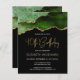 Cette invitation branchée de 40ème anniversaire présente une image aquarelle d'une géode agate dans les tons verts avec des reflets d'or. Les mots "40th Birthday" apparaissent dans la parties scintillant en faux or dans la police d'écriture moderne décorative. Customisez-le avec le nom de l'honoré dans le texte couleur or et les détails en blanc. La même image verte apparaît à l'envers.