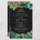 Budget Elégant Vintage Emerald Green Papillons Rose Black Gold Lace Quinceañera Quince Invitation