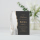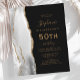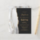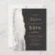 Le bord gauche de cette élégante invitation moderne à la fête du 50e anniversaire comporte une bordure en aquarelle gris et blanc bordée d'une fausse parties scintillant dorée. Le texte personnalisable combine écriture manuscrite dorée, cuivre et polices italiques sur un arrière - plan noir ardoise. L'envers présente une conception d'agate correspondante.