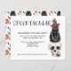 BUDGET Halloween Spooktacular Black Cat On A Skull et hantée éffrayant texte design avec un chat noir aquarelle assis sur un crâne, le chat porte un casquette sorcier et il ya une petite escalade d'araignée sur le crâne - invitation de la fête - avec un arrière - plan chat et citrouille motif - une invitation de la fête Halloween moderne de Ricaso