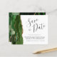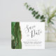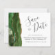 Cet élégant budget enregistrer la carte date dispose d'une bordure d'aquarelle vert chasseur avec bordure découpée avec fausse parties scintillant or. Le texte personnalisable combine le script d'écriture manuscrite gris charbon, les polices cuivre et italique sur un arrière - plan blanc. L'envers est assorti d'un design d'agate vert et or.