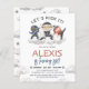 Préparez-vous à une fête d'anniversaire sur le thème du ninja. Ce design dynamique et budgétaire présente une aquarelle peinte à la main illustrant trois petits ninjas qui frappent leur pose d'art martial préférée. Flottant sur un nuage ou émergeant d'une explosion de fumée, ces ninjas ont ouvert la voie à une fête inoubliable. Le jeu "Let's Kick It!" au-dessus d'eux combine l'idée de traîner avec un thème d'arts martiaux, tandis que ci-dessous, l'invitation invite tous les ninjas à se joindre à la célébration. Le nom du garçon d'anniversaire prend le devant de la scène en lettres majuscules rouges gras, suivi de son âge en amusant écriture manuscrite bleue. Les détails de l'événement sont présentés dans une simple typographie, avec des étoiles ninja flanquant l'information importante de la date et de l'heure. Des nuages de caricatures ornent le bas de la carte, ajoutant une touche de plaisir supplémentaire. Une fois retournées, les cartes révèlent un motif de nuages et d'armes étoiles ninja, complétant le thème du ninja. Ce design ludique et énergique est idéal pour les plus jeunes, âgés de 4 à 10 ans environ. Cette invitation est parfaite pour donner le ton à une fête d'anniversaire qui promet action, aventure, et beaucoup de plaisir. Prenez l'attention de vos invités et faites de votre petite journée spéciale de ninja vraiment mémorable. Personnalisez cette invitation pour refléter les détails de votre fête et laissez les festivités commencer. Dans le cadre de la sélection du budget sur Zazzle, cette feuille n'est pas une taille invitation standard ou une qualité de papier. Si vous voulez ce design sur une carte d'invitation, vous pouvez le trouver dans notre magasin ou utiliser le Zazzle Make Machine pour le transférer sur le produit de votre choix. N'hésitez pas à m'envoyer un message pour toute question, veuillez noter que je ne peux pas modifier une commande existante. Parcourez le lien de la collection sur cette page pour plus d'invitations d'anniversaire de garçon.