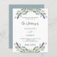 Un arrière - plan blanc décoré de fleurs de lavande et de verdure d'eucalyptus. Personnalisez et vos noms et détails.