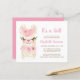 Simple et doux à petit budget invitation à la douche bébé fille avec une aquarelle illustration d'un lama joli et girly avec des fleurs roses et parties scintillant d'or. "It's a Girl !" et le nom de la future mère sont dans un script rose amusant et vous pouvez personnaliser les détails de la douche dans la typographie dorée.