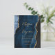 Cette élégante invitation de mariage présente une image arrière - plan d'agate bleu marine d'aquarelle parée de parties scintillant en faux or. Le texte personnalisable combine écriture manuscrite moderne couleur or, cuivre et polices italiques. L'envers offre de l'espace pour les détails mariages sur un arrière - plan d'agate bleu marine correspondant, ainsi qu'un code QR que les invités peuvent scanner pour visiter votre site Web et RSVP, ce qui permet d'économiser le coût d'impression et d'envoi de cartes RSVP séparées.