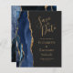 Le bord gauche de cet élégant mariage moderne, à l'exception de la carte de date, est doté d'une bordure en aquarelle bleu marine ornée d'une parties scintillant en faux or. Le texte personnalisable combine écriture manuscrite dorée, cuivre et polices italiques sur un arrière - plan noir ardoise. L'envers est assorti d'un design d'agate bleu marine et or.