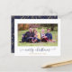 BUDGET Rustic Navy Blue Script Joyeux Noël Photo Holiday Card avec votre photo préférée et un script simple mais élégant Joyeux voeux de Noël. Le dos est un bleu marine de Noël festif avec un motif amusant de branches de vacances en feuille d'or et de verdure. Parfait pour vos cartes de fin de année cette année ! **Notre papier BUDGET est plus petit, plus léger et plus délicat, mais toujours beau! N'oubliez pas les enveloppes!** Si vous avez besoin d'aide ou de pièces de correspondance, contactez-nous à l'adresse cedarandstring@gmail.com.