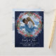 Une invitation élégante et moderne pour ce mariage d'hiver ou de Noël. Ce design présente une couronne florale chic avec baies et feuillage d'hiver encadrant votre photo de couple préférée, le tout sur un arrière - plan de bois rustique bleu marine. Customisez les informations sur l'avant et l'arrière de cette conception pour créer votre invitation unique et spéciale.