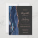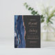 Le bord gauche de cette élégante faire-part de mariage moderne est orné d'une bordure en aquarelle bleu marine ornée d'une parties scintillant en or rose. Le texte personnalisable associe écriture rose, copperplate et polices italiques sur un arrière - plan gris fusain foncé. Ajoutez des détails supplémentaires au verso, ainsi qu'un code QR pour aider vos invités à visiter votre site Web mariage.