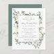L'élégante invitation au service commémoratif présente un cadre botanique de fleurs blanches et de feuilles verts profonds au sommet. Le nom de la personne décédée est écrit dans un texte traditionnel. Tout le texte peut être facilement édité pour créer un souvenir personnel.