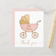 Merci à vos invités de douche pour bébé avec ce gentil et abordable merci avec une aquarelle rose pastel et or d'un chariot rétro pour bébé et "merci" écrit dans un script élégant coordonnant avec l'or du chariot. Sur le devant, vous pouvez personnaliser le texte sur le chariot (nom du bébé, "Merci" ou laisser vide); sur le dos, vous pouvez facilement personnaliser votre message de remerciement et votre signature.