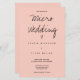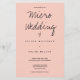 Une faire-part de mariage sur le document budgétaire pour un micro-mariage. Cette invitation en papier léger est faite en rose et noir avec juste assez d'informations pour gagner la journée. Ajoutez simplement vos informations, ajoutez cet invitation à votre panier et profitez de votre petit mariage intime. (De plus, l'option papier satiné est très mince et le papier semi-brillant est suggéré.) (La collection inclut des versions de cette invitation sur des types de papier plus lourds, plus traditionnels) Micro Mariage rose noir Typographie Budget Papier Invitation Jour férié Conception | ©Melissa Patton designer