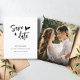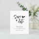 Le design comprend l'expression "Save the Date", élégamment scénarisée à travers le centre, dans une calligraphie fluide et moderne qui laisse entrevoir un romantisme sans accabler les sens. La typographie combine une élégance contemporaine avec des éléments vintages subtils, en trouvant un équilibre parfait entre l'ancien et le nouveau. Niché délicatement sous le script se trouve une ligne simple mais enchanteresse dessinée d'un coeur, son simple trait continu qui exprime à la fois la simplicité et la nature sans fin de l'amour. Ce design minimaliste, rendu dans une palette douce et neutre, promet un événement mariage plein d'élégance et de charme sobre.