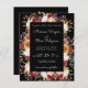 Invitations de mariage noir floral automne budget moderne. Nom, date et information de la Personnaliser.