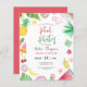 Une piscine moderne et chic à prix d'été à thème d'anniversaire pour le sweet sixteen avec des éléments amusants et colorés de l'aquarelle tels que feuilles tropicaux, noix de coco, lunettes de soleil, ananas, popsicles, coquillages, caméra, fleurs, avocat, pastèque, beigne, cerise et cocktail boisson.