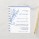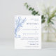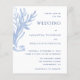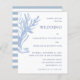 Créez des invitations de mariage pour des événements de plage qui présentent un design moderne bleu et blanc décoré avec un tableau d'algues aquarelles sur le devant et la motif rayée sur l'arrière. C'est une belle idée pour les mariages côtiers et sous le thème marin. Utilisez le modèle pour personnaliser les invitations de mariage avec vos noms, emplacement et lieu.