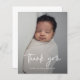 Ce petit budget Convivial Design Baptême photo bébé carte de remerciements dispose d'une belle photo horizontale fond de saignement et lettré main merci script et texte modificatif minimal. Cliquez sur le bouton Modifier pour customiser cette conception.