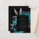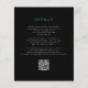 Cette faire-part de mariage élégante et moody présente un bouquet luxuriant et romantique à fleurs en bleu turquoise, avec un faux feuillage argenté et un feuillage de parties scintillant sur un arrière - plan noir. Customisez le texte gris turquoise et argenté dans des polices élégantes sur un rectangle sombre. L'envers offre de l'espace pour les détails mariages sur un arrière - plan noir solide, ainsi qu'un code QR que les clients peuvent scanner pour visiter votre site Web et RSVP, ce qui permet d'économiser le coût d'impression et d'envoi de cartes RSVP séparées.