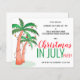 Budget Noël en juillet Fête d'été Invitation. Fêtons Noël en juillet avec une fête ! Famille Invitation et amis à votre fête de Noël avec cette invitation amusante avec des palmiers dessinés à la main et décorés de lumières. Customisez ces invitations avec vos détails et amusez-vous! Dessin original © Michele Davies.