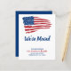 Nous avons bougé ! Annonces modernes de déplacement du drapeau américain. Ce drapeau américain que nous avons déplacé annonces sont parfaites pour un faire-part en mouvement militaire, des annonces en mouvement de l'armée, des familles patriotiques. Personnalisez ce drapeau américain en mouvement faire-part avec votre nom de famille, et nouvelle adresse. Voir notre collection pour apparier des cadeaux de déménagement militaires et des cadeaux de déménagement. DROIT D'AUTEUR © 2021 Judy Burrows, Black Dog Art - Tous droits réservés. Budget Nous avons déplacé le Faire-part patriotique du drapeau américain