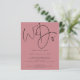 Script We Do Dusty Rose QR Code Faire-part de mariage. Un prix économique PETIT 4,5 po x 5,6 po alternatif. Disponible dans un STOCK SEMI-GLOSS 110 lb CARD qui est l'option par défaut (plus épais pour les invitations), OU un STOCK SATIN FINISH 80 lb THINNER PAPER (idéal pour les boîtiers). Ajoutez votre code QR à votre site Web mariage au dos fait de cette option pratique pour vos invités à RSVP et voir tous les détails sans avoir besoin de RSVP séparé et de cartes de détails. Un design simple mais élégant sur un arrière - plan de Dusty rose rose. Script stylish set We Do prend le devant de la scène.Le reste du texte que vous pouvez facilement personnaliser. Les couleurs du texte et de l'arrière - plan peuvent être modifiées si vous souhaitez mieux convenir à votre thème mariage via l'option customiser plus loin.