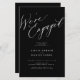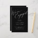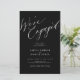 Simple minimaliste chic calligraphie blanche noir nous sommes engagés script budget abordable invitation de partie engagement.