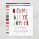 Invitation vos invités de fête de vacances dans le style avec cette prise moderne sur un thème traditionnel de Noël! Ce design est composé d'un arrière - plan blanc simple avec "O come all you joyful" en typographie mignonne et colorée. Personnalisez avec votre nom de famille et les détails de votre fête. Le dos de la feuille de papier est un motif rayé. Dans le cadre de la sélection du budget sur Zazzle, cette feuille n'est pas une taille invitation standard ou une qualité de papier. Si vous voulez ce design sur une carte d'invitation, vous pouvez le trouver dans notre magasin ou utiliser le Zazzle Make Machine pour le transférer sur le produit de votre choix. N'hésitez pas à m'envoyer un message pour toute question. Joyeuses vacances !