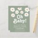 Prévoyez-vous un baby shower non sexiste ? Cette invitation de baby shower de marguerite économique est décorée de marguerites et de typographie rétro élégante sur un arrière - plan vert sage.