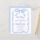 Célébrez l'arrivée prochaine de votre bébé avec l'Invitation au Baby shower d'aquarelle Blue Ribbon Bow! Dotée d'un arc bleu peint à la main et de détails d'aquarelle douce, cette invitation dégage une élégance et un charme intemporels. Des polices délicates et une palette de couleurs sereines en font le choix idéal pour honorer la maman-to-be. Que vous soyez l'hôte d'un rassemblement ou d'une grande fête, cette invitation magnifiquement conçue prépare le terrain pour un baby shower chaleureux et inoubliable.
