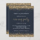 BUDGET Mariage de la Parties scintillant d'or soirée Invitation bleu marine. Un prix économique PETIT 4,5 po x 5,6 po alternatif. Disponible dans un STOCK CARTE SEMI GLOSS 110 lb qui est l'option par défaut (recommandé pour les invitations), OU un STOCK PAPIER THINNER SATIN FINISH 80 lb (idéal pour les boîtiers). Soirée est dans un script informel et le reste du texte que vous pouvez facilement personnaliser.