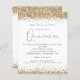 Parties scintillant d'or Quinceañera Invitation.Une alternative économique SMALLER 4.5" x 5.6". Disponible dans un STOCK SEMI GLOSS 110 lb CARD ou un STOCK SATIN FINISH 80 lb THINNER PAPER. Les enveloppes sont en option. D'élégantes bordures de confettis en faux parties scintillant doré sont en haut et en bas et aussi à l'arrière. Quinceañera est aménagée dans un style moderne d'écriture manuscrite. Personnalisez facilement le reste du texte à vous.