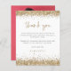 Parties scintillant d'or Budget Photo Cinquantième 50ème Merci. Un prix économique PETIT 4,5 po x 5,6 po alternatif. Disponible dans un STOCK SEMI-GLOSS 110 lb CARD qui est l'option par défaut (plus épais pour les invitations), OU un STOCK SATIN FINISH 80 lb THINNER PAPER (idéal pour les boîtiers). Les bordures de fausse parties scintillant en or sont en haut et en bas sur le devant et remplacent la photo sur le dos par un favori de votre parti. Le Merci est dans un script de style manuscrit en coordination de l'or. Personnalisez facilement le reste du texte. Vous pouvez également modifier le texte et la couleur de l'arrière - plan via l'option customiser plus si vous le souhaitez.