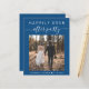 Un aménagement moderne et économique ou une petite faire-part mariage et réception classique invitation bleue. Le devant présente votre photo de jour de mariage et "Happily Ever After Party" dans un mélange de typographie blanche simple et de script blanc tendance avec des swashes. Sous votre photo, ajoutez vos prénoms et votre date de mariage. Au contraire, personnalisez votre message de manière plus détaillée et ajoutez les détails de la partie ou de la réception et vos noms dans un script de type signature.