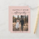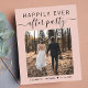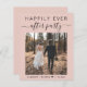 Étage moderne rose pâle et abordable ou faire-part mariage plus petit et invitation à la réception. Le devant présente votre photo de jour de mariage et "Happily Ever After Party" dans un mélange de typographie simple et de script tendance avec des swashes. Sous votre photo, vous pouvez ajouter vos prénoms et votre date de mariage. Au verso, personnalisez votre message de manière plus détaillée et ajoutez les détails de la partie ou de la réception et vos noms dans un script de type signature.