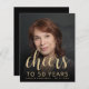 L'avant de cette invitation à l'anniversaire de 50 ans présente la photo de l'invité d'honneur avec une incrustation de texte dorée. Le mot "cheers" apparaît dans un élégant script de calligraphie couleur or, suivi de "jusqu'à 50 ans" et l'invité d'honneur du nom et de l'anniversaire dans la police sans serif. Un écran sombre permet de faire apparaître le texte. Customisez l'envers avec le nom et les détails de la fête sur un arrière - plan noir. Une excellente façon de célébrer quelqu'un qui a cinquante ans ! (REMARQUE : les enveloppes ne sont pas incluses automatiquement dans cette invitation budgétaire. Pour ajouter des enveloppes à votre commande, utilisez le menu déroulant "Enveloppes".)