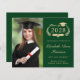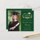 Faire-part moderne de graduation verte à petit prix avec "Classe de" à l'intérieur d'une illustration en or clair de couronne de laurier incorporant un haut casquette et un diplôme, une photo du diplômé et leur nom dans un élégant script en or clair. Ajoutez leur école, leur majeure, leurs distinctions honorifiques ou leurs plans d'avenir.