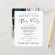Étage économique ou petit faire-part mariage et réception de mariage enregistrer la date. Le devant présente "Save The Date For Our Happily Ever After Party" dans un mélange de typographie simple et d'un script moderne, et vous pouvez personnaliser votre faire-part mariage et réception enregistrer la date dans plus de détails et vos noms dans un script signature. Au verso, vous trouverez votre photo de mariage préférée, vos prénoms et les dates de mariage et de réception.