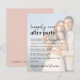 Faire-part mariage moderne rose vif et économique et invitation à la réception avec votre photo superposée avec "Happily Ever After Party" dans un mélange d'écriture contemporaine et de lettres audacieuses. Personnalisez votre invitation et ajoutez vos noms dans un script de type signature. Au dos, vos noms et vos dates de mariage et de réception sont réunis par un coeur (si vos dates de mariage et de réception sont différentes, gardez vos prénoms sur la ligne supérieure et vos deux dates séparées par le coeur sur une deuxième ligne).