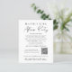 Un hébergement économique ou un faire-part mariage privé, une réception de mariage ou une invitation à célébrer une fête. Le devant présente "Happily Ever After Party" dans une simple typographie et un script moderne. Personnalisez votre faire-part et votre invitation et ajoutez vos noms dans un script de type signature. Entrez l'adresse URL de votre site Web mariage pour créer un code QR pour que les invités puissent scanner tous les détails et à RSVP en ligne. Au verso, vous trouverez votre photo de mariage préférée, vos prénoms et votre date de mariage.