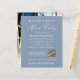 Étage bleu poussiéreux et économique ou faire-part de mariage privé et invitation de mariage avec "Happily Ever After Party" dans une simple typographie blanche et un script blanc moderne. Personnalisez votre faire-part et votre invitation et ajoutez vos noms dans un script de type signature. Entrez l'adresse URL de votre site Web mariage pour créer un code QR pour que les invités puissent scanner tous les détails et à RSVP en ligne. Au verso, vous trouverez votre photo de mariage préférée, vos prénoms et votre date de mariage.