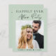 Un petit mariage ou un petit faire-part à l'élégance verte et économique et une invitation à la réception avec votre photo et "Happily Ever After Party" en typographie simple et un script chic et moderne. Au verso, personnalisez votre message et les détails de votre réception, entrez votre adresse de site Web mariage pour créer un code QR pour que vos invités puissent scanner pour plus d'informations et pour RSVP en ligne, et ajoutez vos noms dans un script signature.