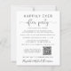 Hébergement économique ou faire-part mariage privé et invitation à la réception de mariage. L'avant présente "Happily Ever After Party" dans une simple typographie et un script élégant avec des swashes. Customisez votre faire-part et votre invitation, entrez l'adresse de votre site Web mariage pour créer un code QR que vos invités peuvent scanner pour plus d'informations et à RSVP en ligne, et ajoutez vos noms dans un script de type signature. Le dos présente votre photo mariage préférée, vos prénoms et votre date de mariage.