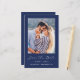 Cette simple et minimaliste carte Save the Date présente une photo verticale au-dessus des mots "Save the Date" dans un élégant script d'écriture manuscrite blanche, suivie des noms du couple, de la date mariage et de la ville dans la police sans serif sur un arrière - plan bleu marine. Ajoutez un message plus détaillé avec des informations supplémentaires sur l'inverse, ainsi qu'un code QR pour aider vos invités à visiter votre site mariage.