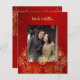 Cette élégante faire-part de mariage chinoise dispose d'une photo et, une véritable feuille d'or rond symbole de bonheur double et fleurs de feuille d'or sur un arrière - plan floral rouge rubis chatoyant. Noms de mariée et de mariée dans un élégant script manuscrit. Invitation à la cérémonie chinoise de faire-part de mariage ou de thé.
