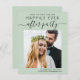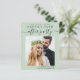 Moderne et chic, petit prix, ascenseur vert sage ou faire-part de mariage privé et réception enregistrer la date qui comprend votre photo et "Save The Date For Our Happily Ever After Party" dans un mélange de typographie simple et un script chic avec des swashes. Ajoutez vos prénoms et la date et l'emplacement de réception. Sur le dos, personnalisez votre faire-part mariage et les informations de réception.