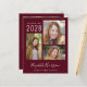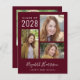 Faire-part de remise de diplômes en rouge bordeaux et une invitation à la fête avec un collage photo 3, "Graduate" dans un script blanc élégant, et le nom de la diplômée, année de classe et l'école ou l'université en simple typographie blanche. Au verso, ajoutez une photo supplémentaire et les détails de votre fête de remise de diplômes.