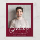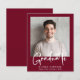 Un faire-part de graduation rouge bordeaux moderne et économique, avec votre photo et "Graduate" dans un élégant script blanc audacieux. Ajoutez le nom, l'école et l'année de classe de la jeune fille en simple typographie blanche.